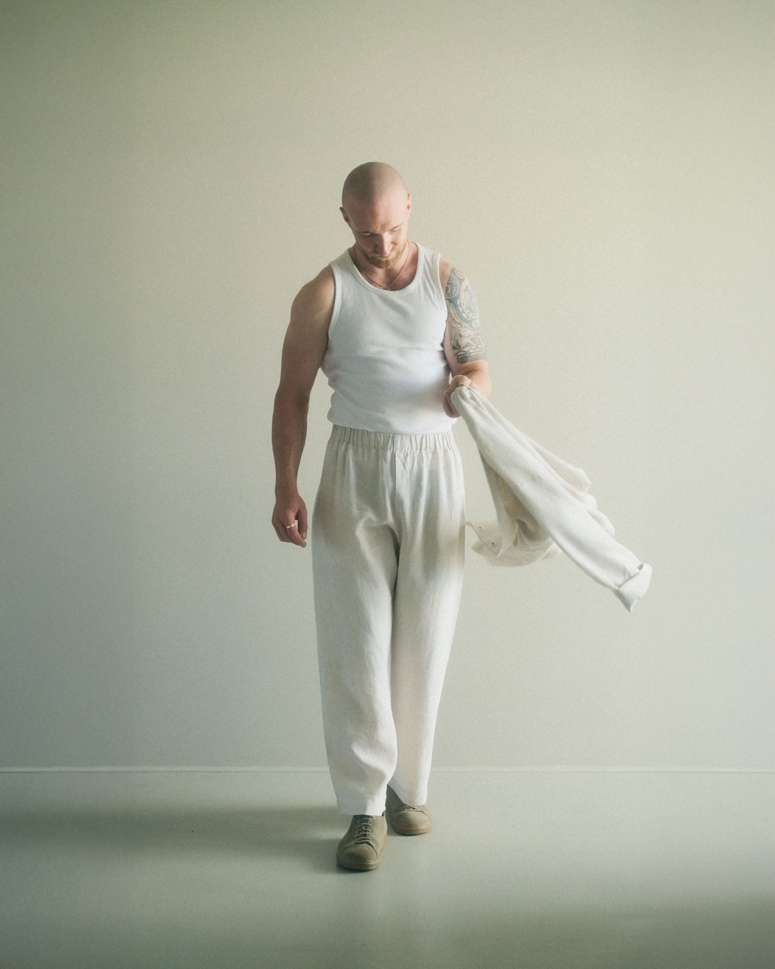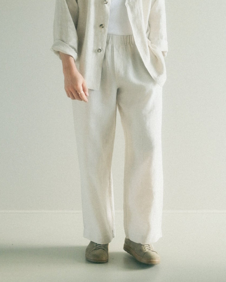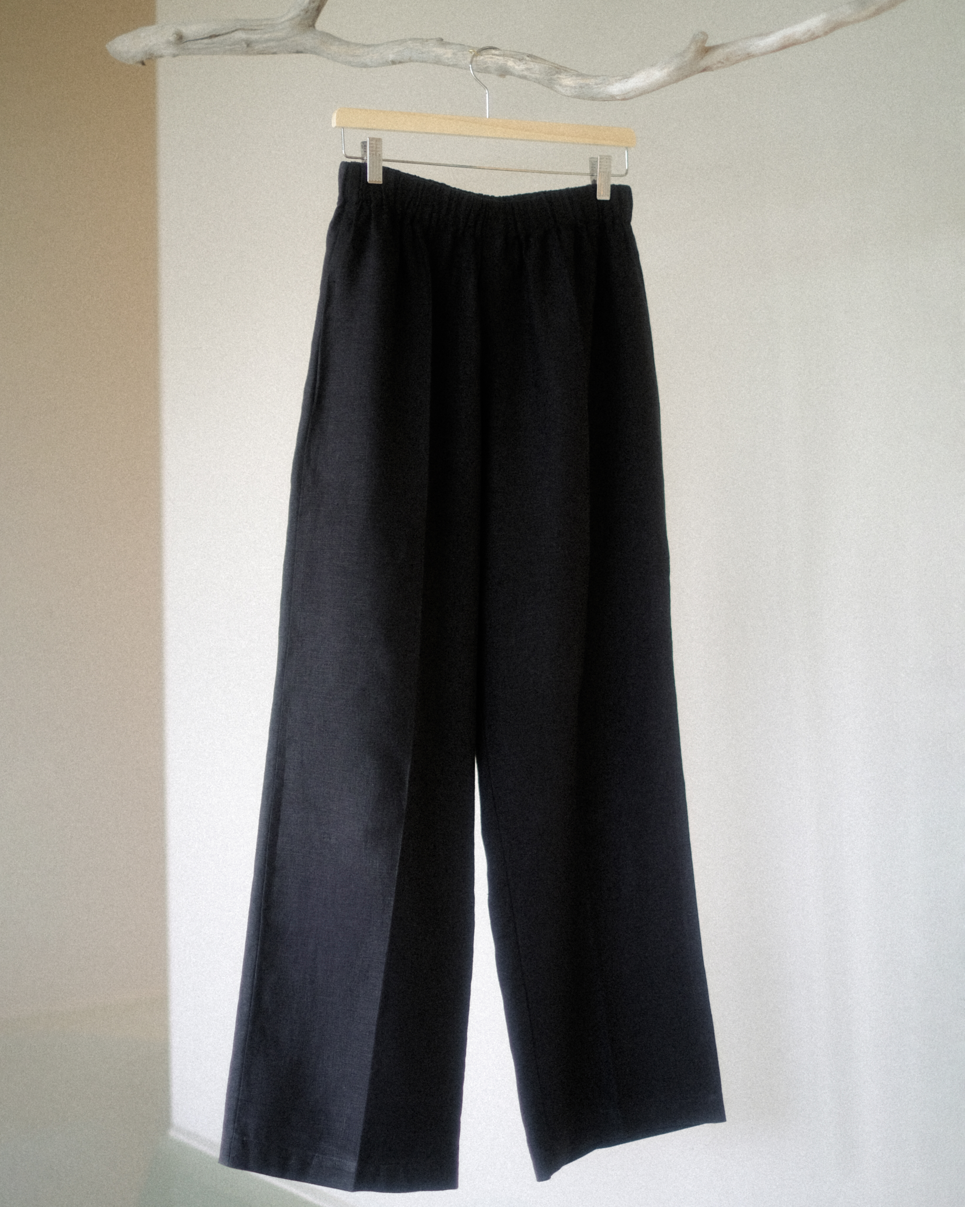 A relaxed, straight-leg pant with a soft drape and elasticated waist. Designed to sit lightly on the body and move with ease, this piece blends comfort with structure, suitable for everyday wear or dressed-up moments.